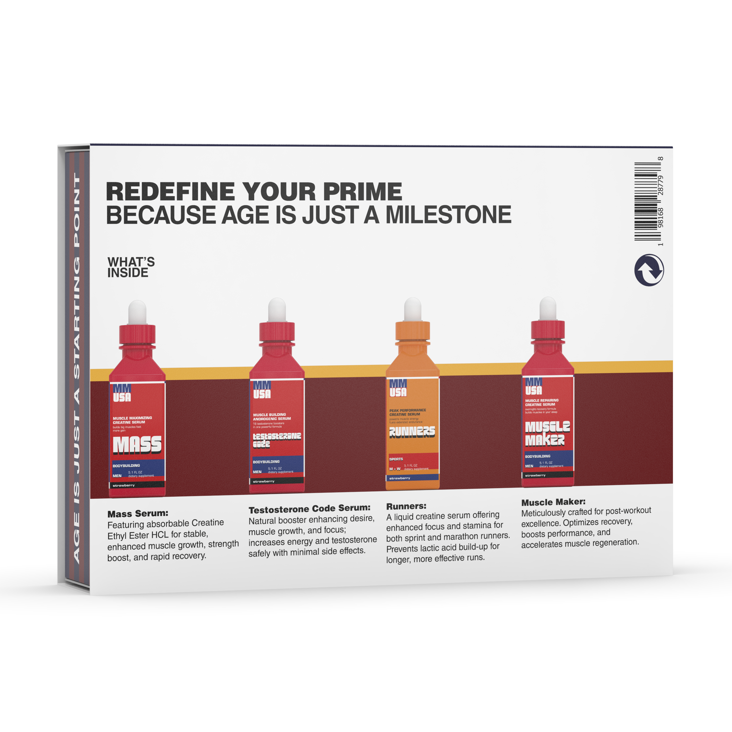 Selected for the 45+ warrior, this potent bundle synergizes key supplements to amplify muscle strength, ignite power, and invigorate overall vitality. It’s not merely about aging gracefully; it’s a bold assertion of strength and vitality in your prime years.